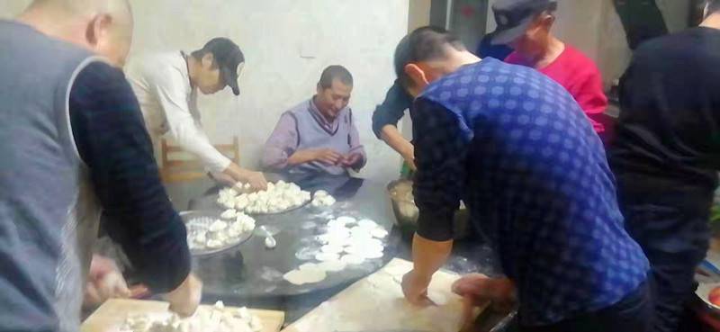 下午1点多钟,总经理王伟同志带领队员们开始热火朝天地忙起来。办公室里不时传出一阵阵欢声笑语,现场热闹非凡。大家一来便纷纷“抢占”自己的一席之地。看,有的在揉面,有的在擀皮、有的在调馅,个个动作娴熟,有说有笑唠家常,甚是热闹。